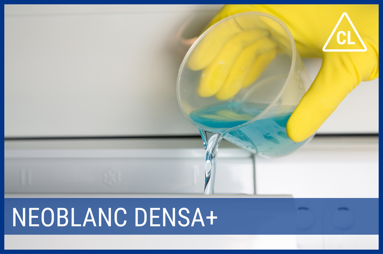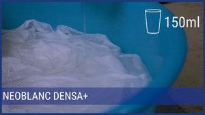 NEOBLANC Densa+ no compartimento dedicado até o nível indicado. Não se preocupe em sujar-se durante a utilização porque graças à sua fórmula densa terá o máximo controlo e poderá dizer finalmente adeus aos salpicos!
