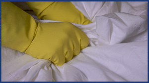 Para evitar a dispersão de micropartículas de tinta que se soltaram durante o molho e que poderão escurecer as peças, recomendamos de adicionar mais um pouco de lixívia como aditivo também nesta fase. Se os tecidos forem totalmente brancos e resistentes, deite